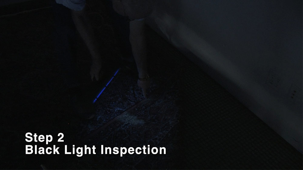 We look for unwanted pet urine or other stains that might not be visible to the naked eye. The use of black light, or UV light, can help identify: