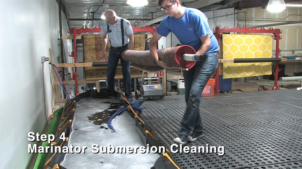 When an area rug is submerged in our marinator it will be washed with a special cleaning agent to remove urine and odors associated with it.