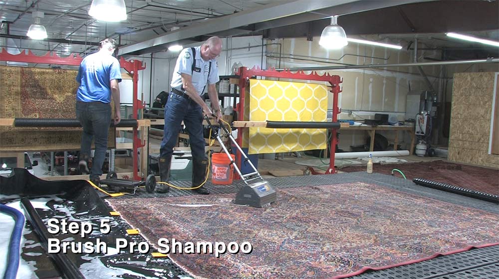 After cleaning your area rug in our marinator, your area rug will be treated with a special shampoo.
