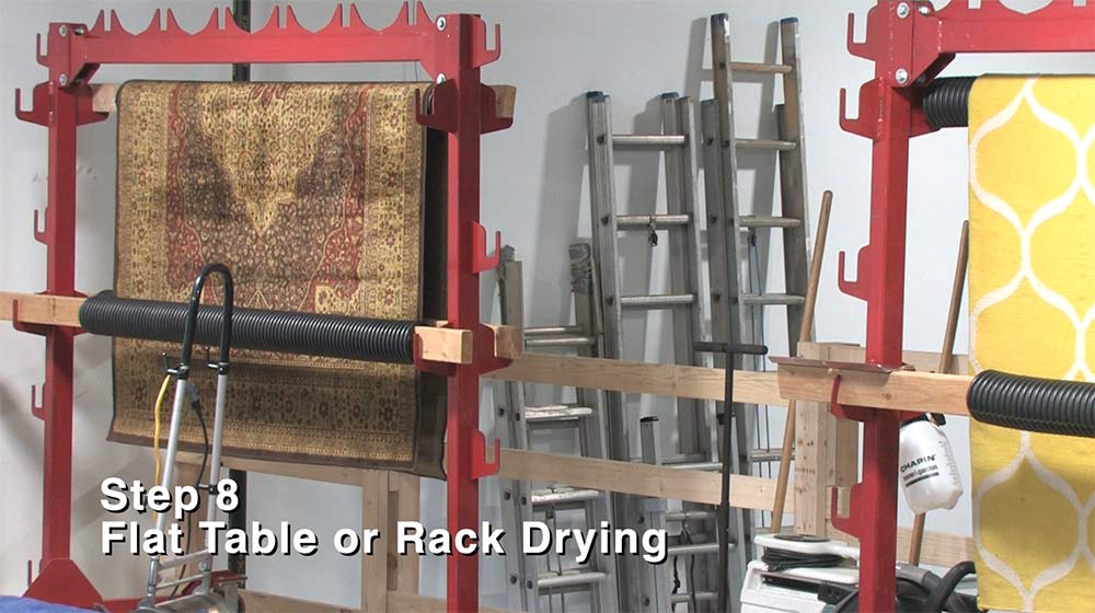 Your rug will be dried flat or hanging depending on your area rug type or special needs.