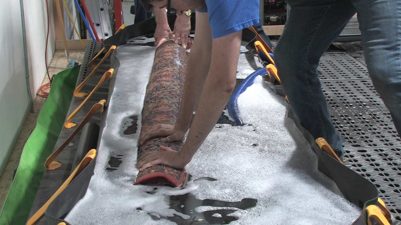 - We finalize this step of the process by flushing the rug at a rate of 80 gallons per minute.